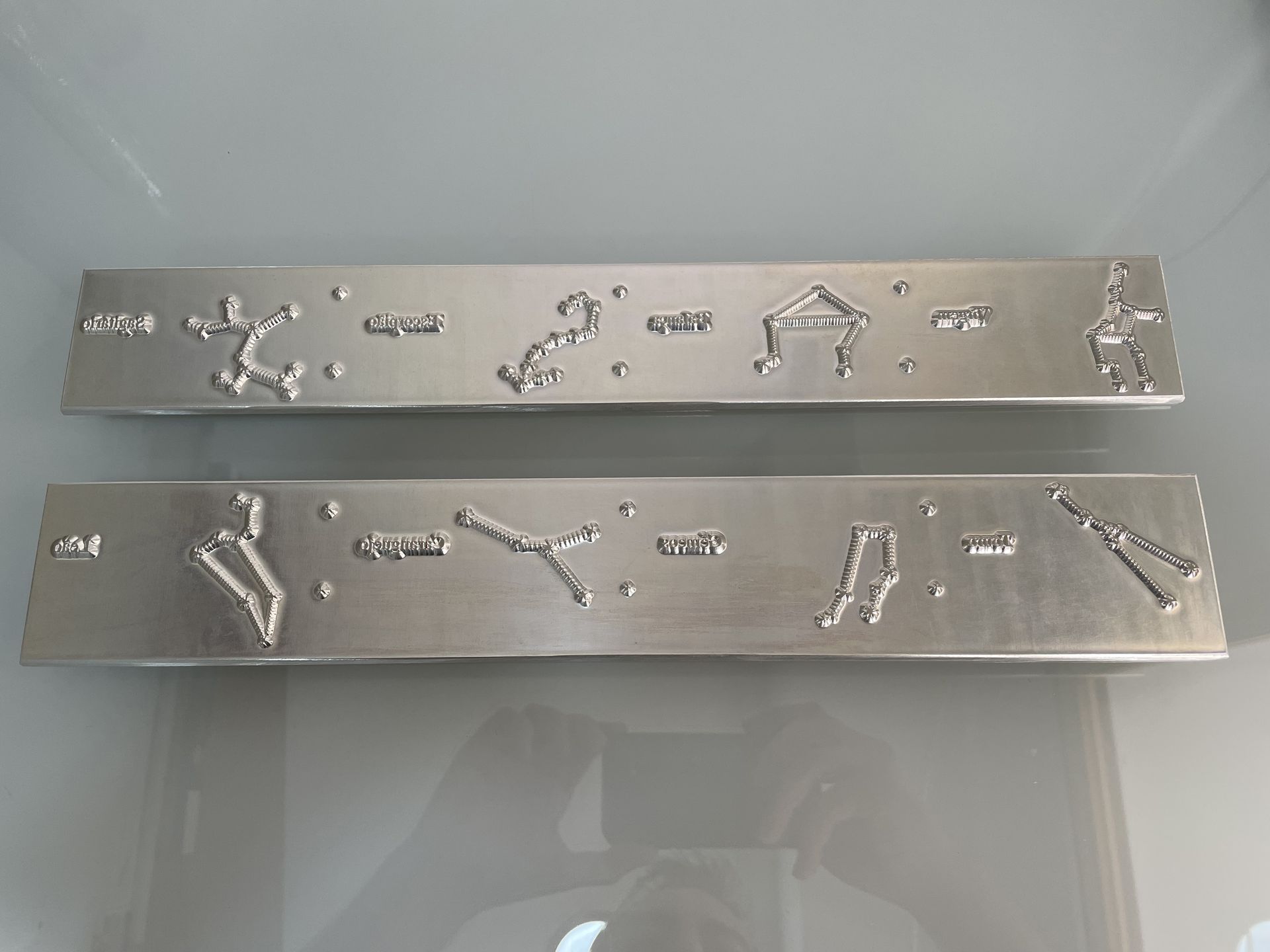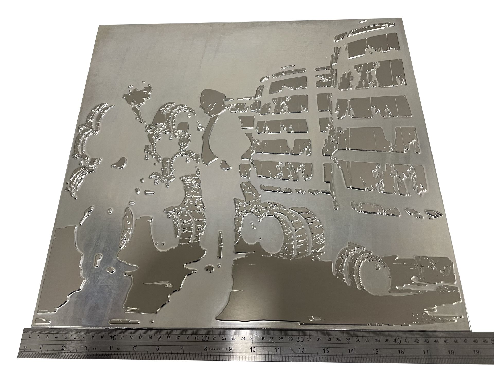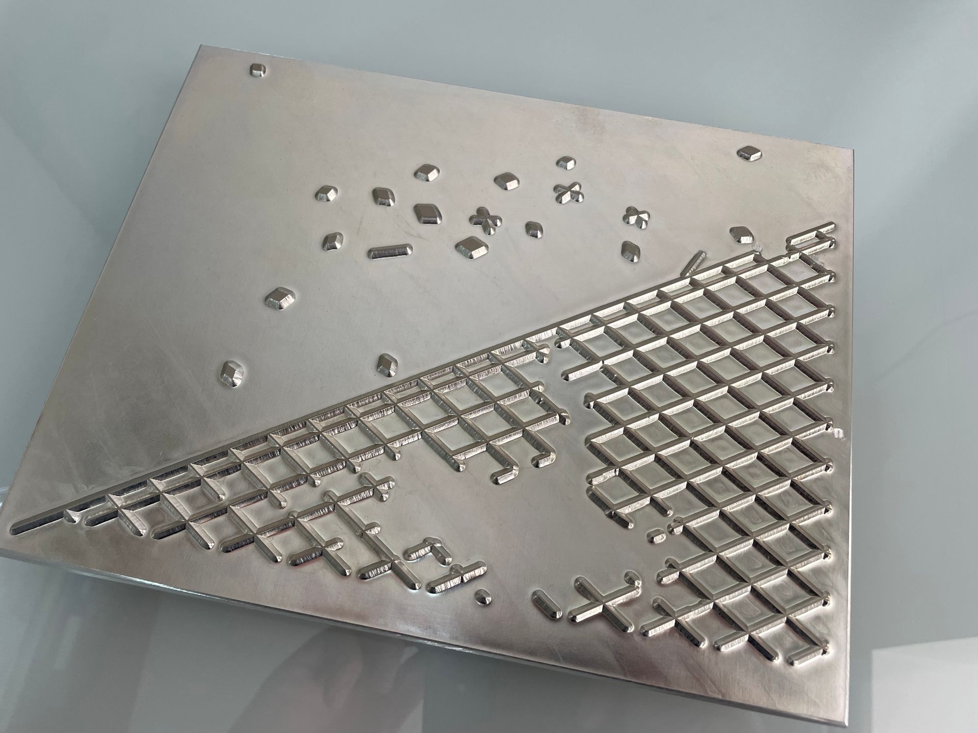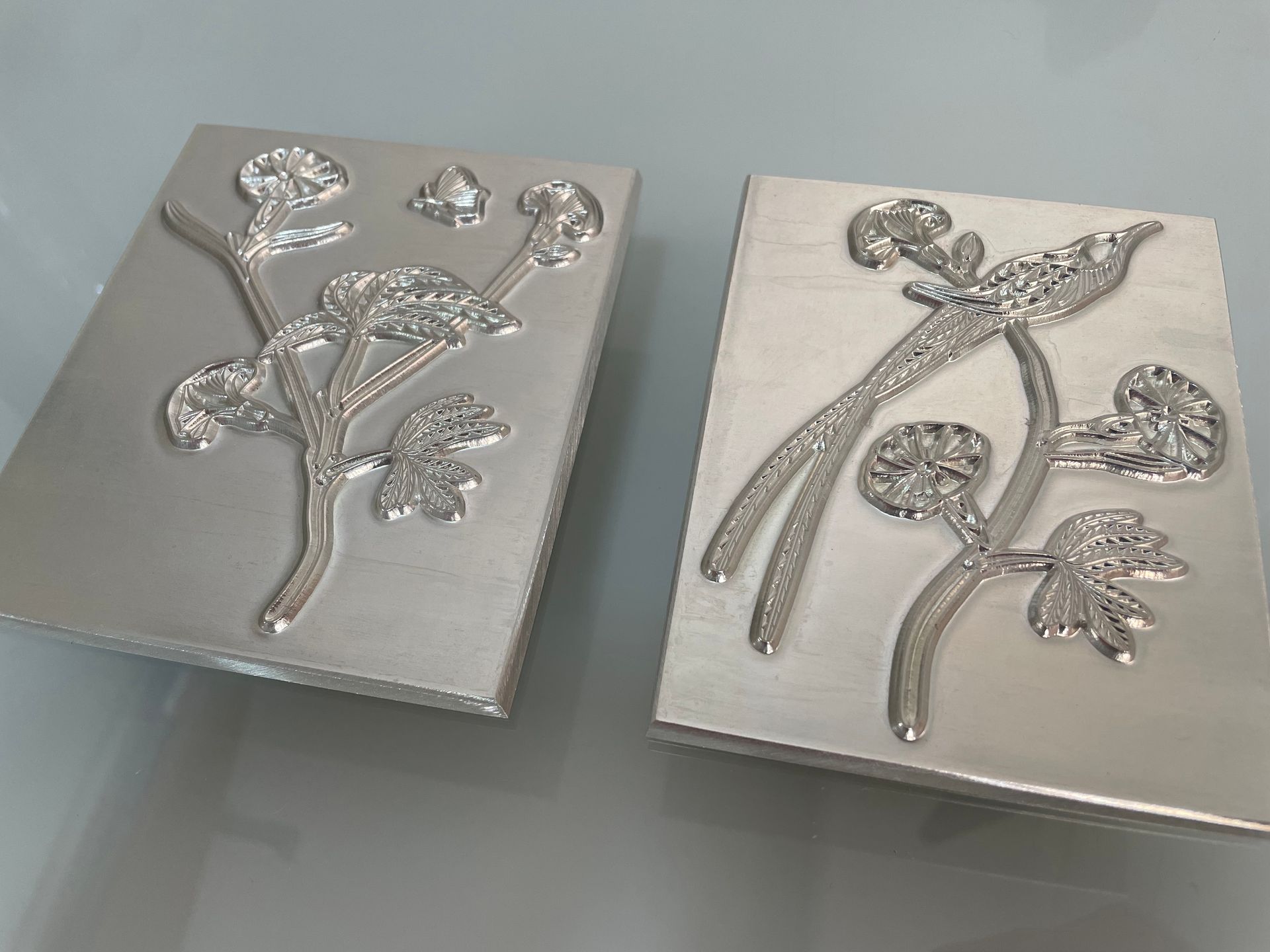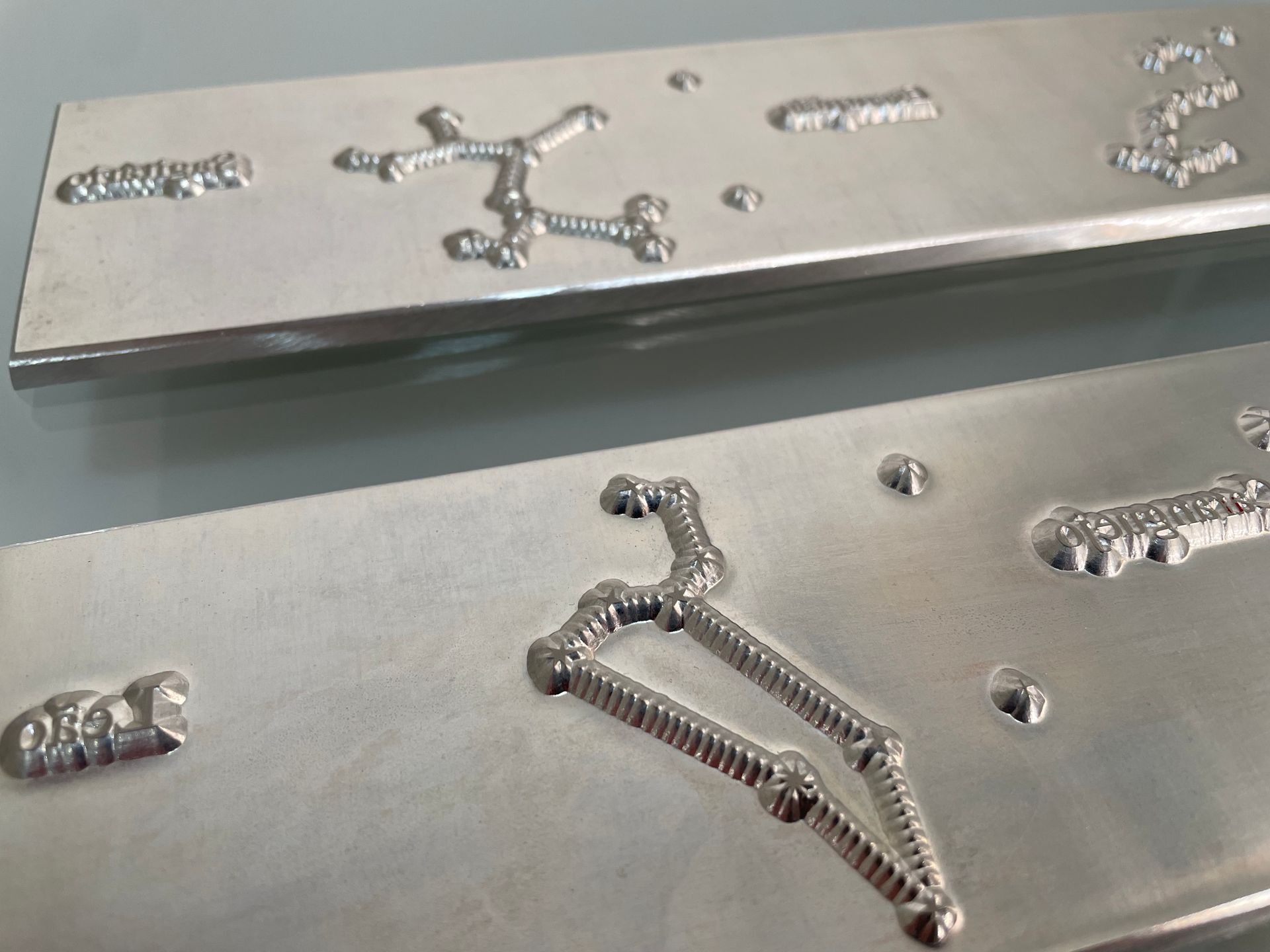 gravuras em magnésio com texturas personalizadas (micro estampagem);